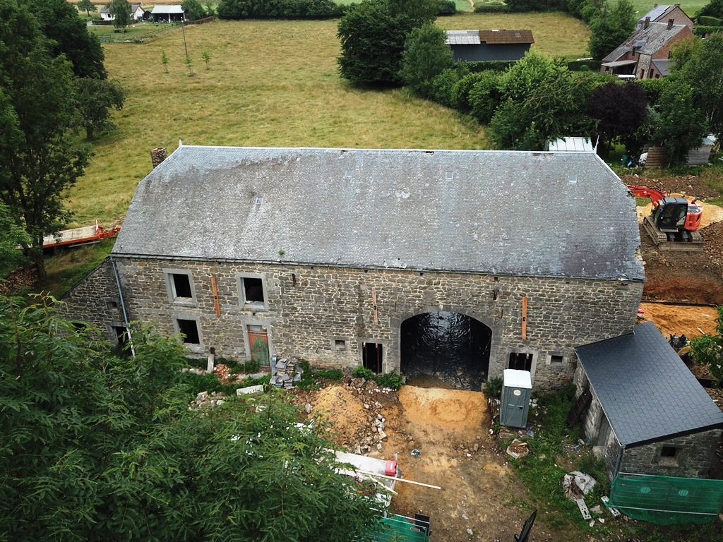 Situé sur un petit affluent de la Lesse, le village de Celles offre des paysages somptueux où il fait bon vivre. COGEBAT réalise la rénovation complète d’une ancienne bâtisse en moellons sur un sol particulièrement schisteux qui rend nos travaux de terrassement particulièrement ardus.