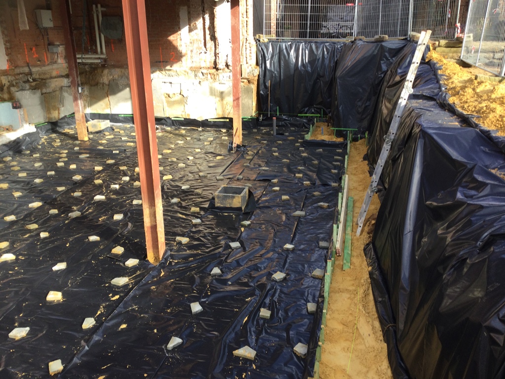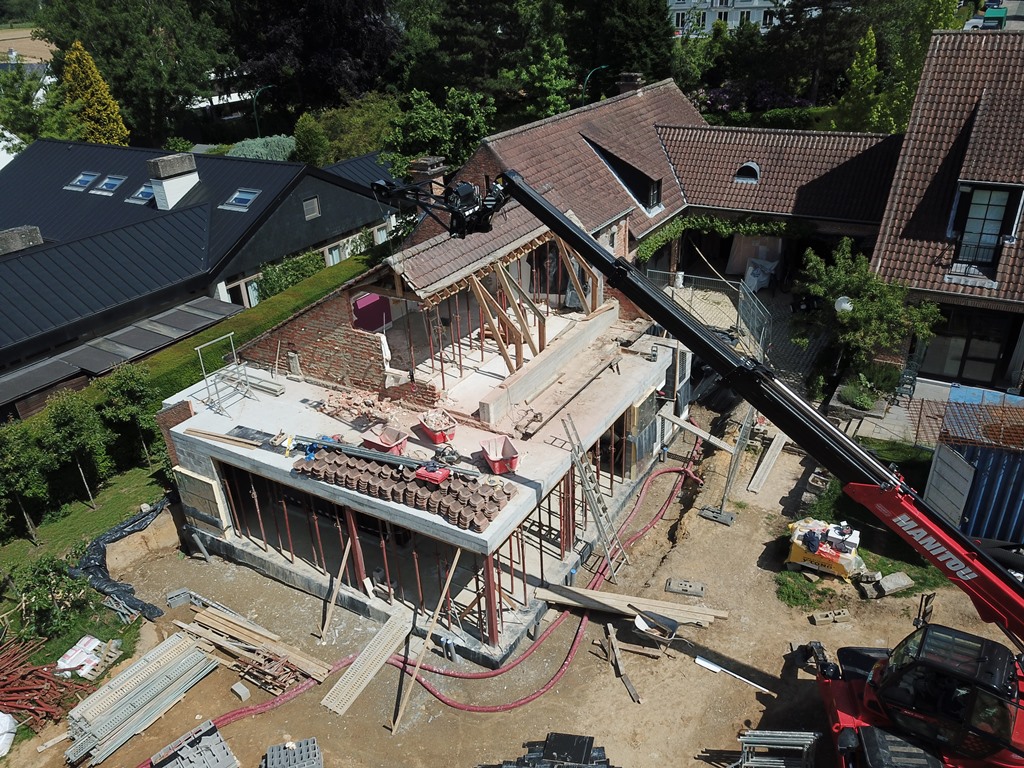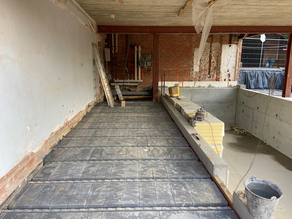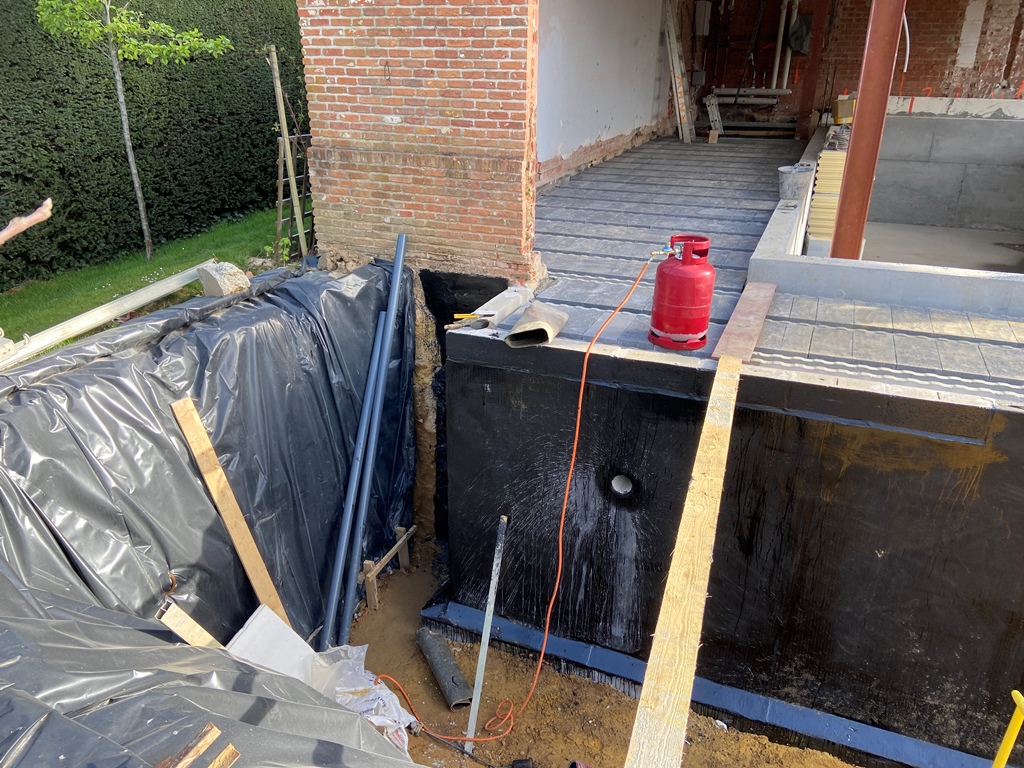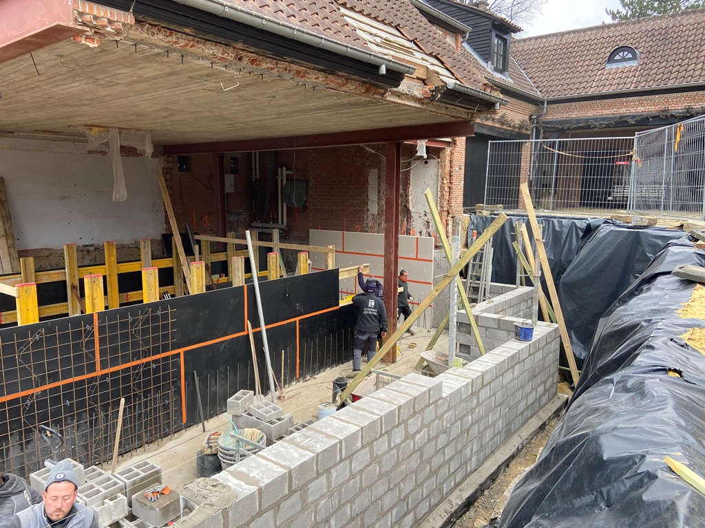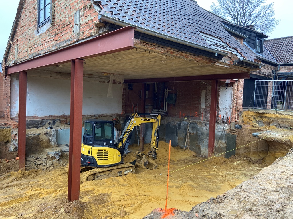 Ce chantier, très technique, consiste à préserver la partie supérieure de l’immeuble existant, procéder à la démolition de tout le rez-de-chaussée et approfondir le niveau des fondations pour créer une nouvelle piscine avec caves périphériques.